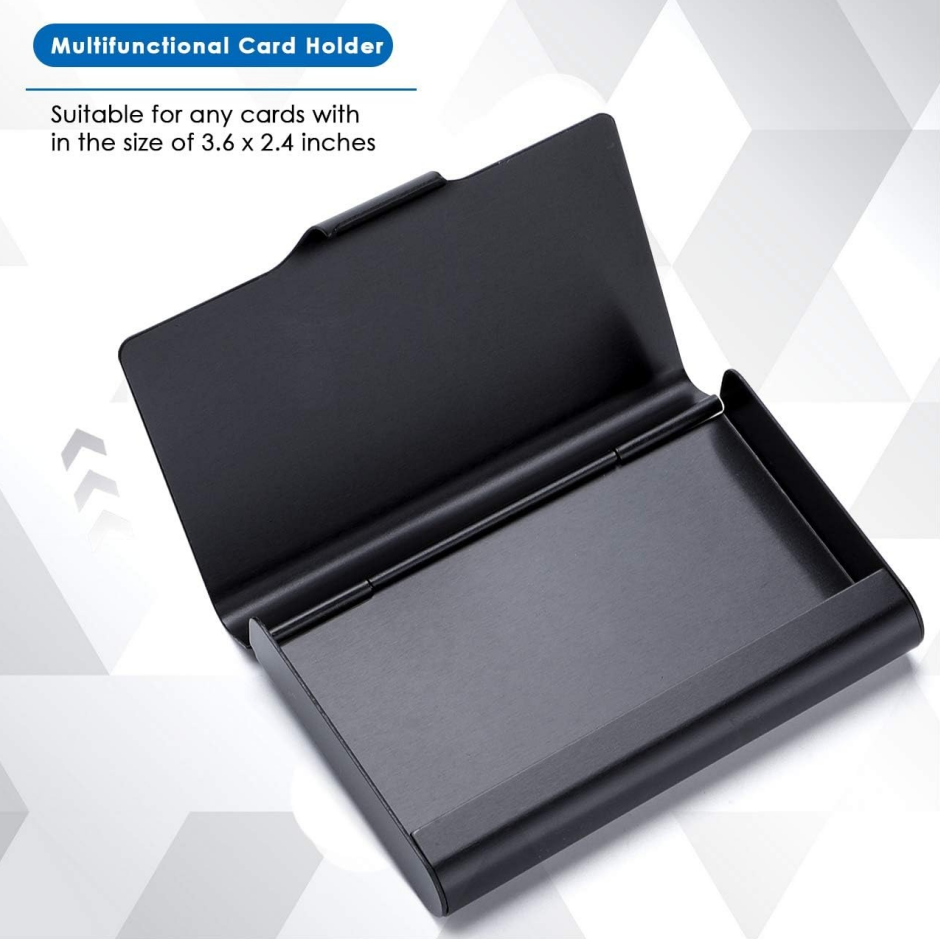 Every salesperson, business owner, and professional deserves an aluminum alloy business card holder. Like a discreet Swiss Army knife, it’s always ready to hand you a card representing yourself. The cool, smooth black aluminum casing conveys a message of efficiency and competence.