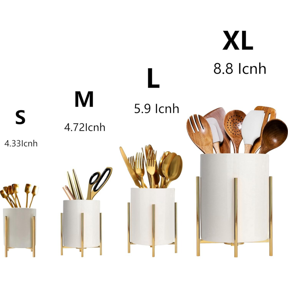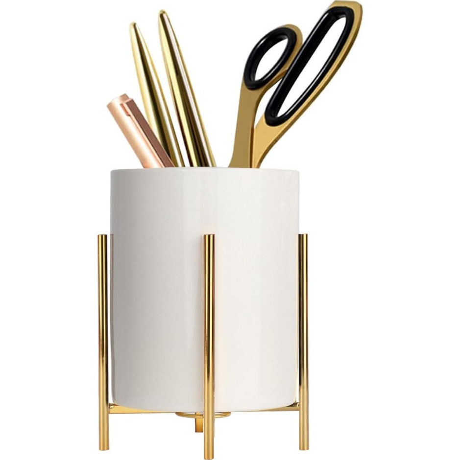 This pen holder can be described as “the pinnacle of practicality and aesthetics.” The gold frame makes it resemble a small Chanel-style display shelf, while the white ceramic inner liner retains a fresh feel. It also blends seamlessly into the kitchen for storing wooden spoons.