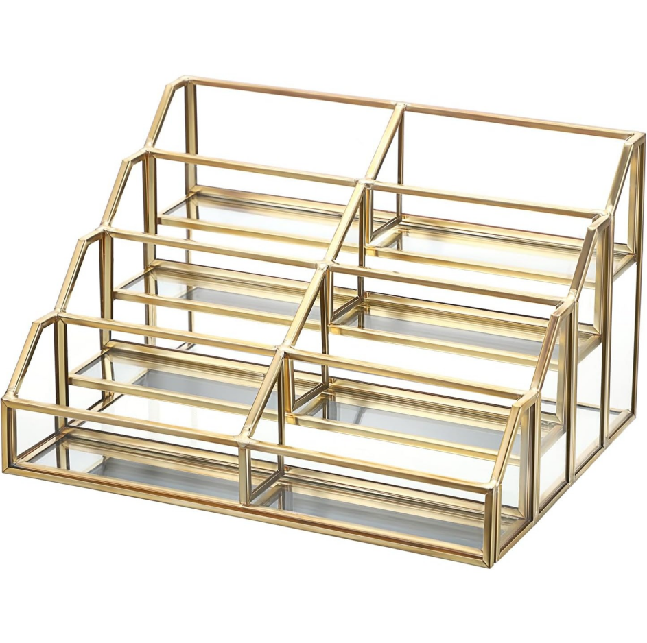 Material: Mirrored glass (silver-plated back) + gold metal frame, non-slip base.
