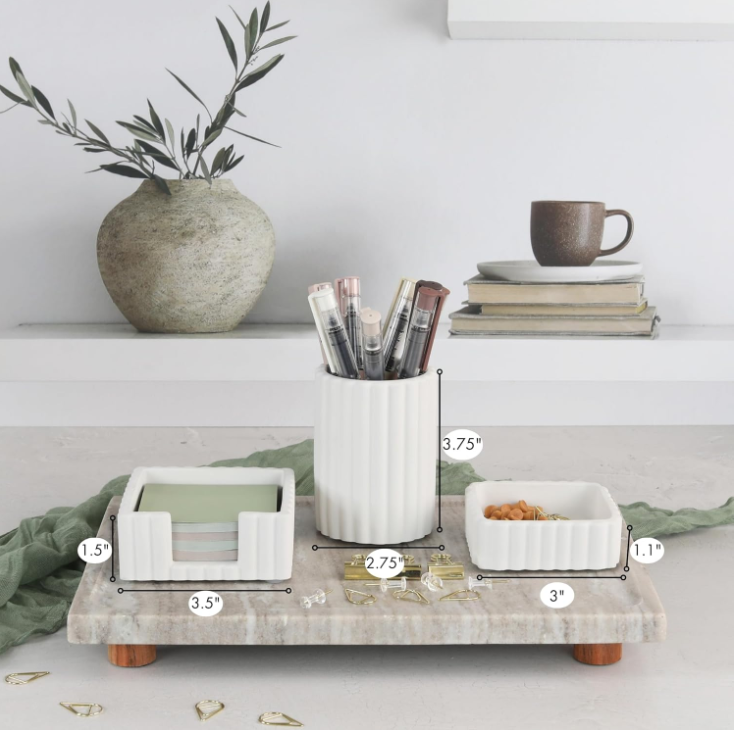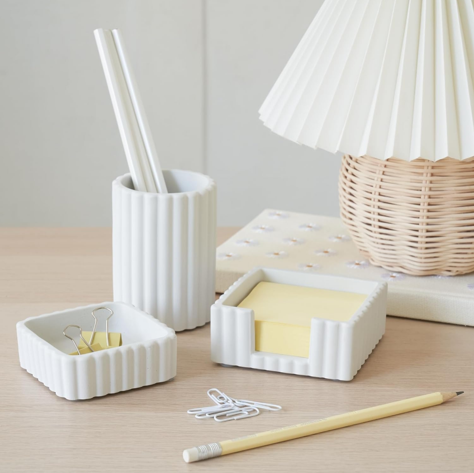 Three-Piece Modern Concrete Texture Pen Holder Set